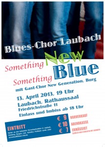 Nachdem der Blueschor Laubach, der ebenfalls von Kantor Michael Harry Poths geleitet wird, im vergangenen September bereits beim „Let’s s(w)ing!“-Konzert von New Generation dabei war und den Blues nach Herborn gebracht hat, wird unser Erwachsenenchor sich nun für die Unterstützung revanchieren und das Frühlingskonzert der Laubacher mitgestalten, das unter dem Motto „Something New, Something Blue“ am 13. April im Rathaussaal in Laubach stattfindet.